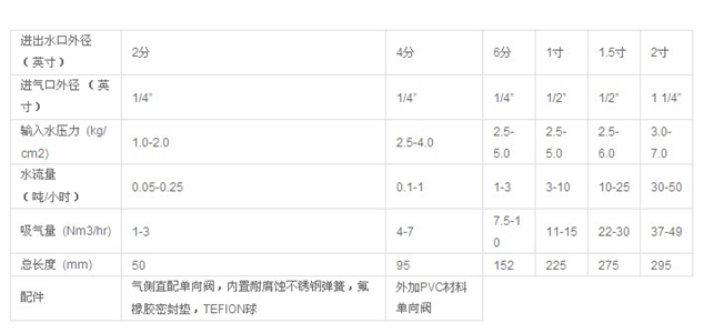 3、1.5寸射流器以下尺寸射流器自帶單向閥。2寸單獨(dú)配一個(gè)單向閥(6分PVC材料)