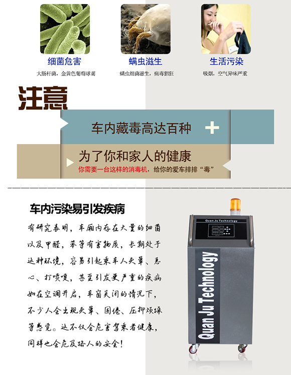 醫(yī)學(xué)專家認(rèn)為,由于車廂是一個密封的空間,空氣的污染情況比一般的室外要嚴(yán)重得多。車內(nèi)的座椅、頂棚、儀表板、地毯、腳墊、門板等多為皮料、塑料、橡膠、纖維物,長期使用后極易藏污納垢。iqb臭氧發(fā)生器_臭氧消毒機_臭氧水機_制氧機_廣州佳環(huán)電器【官網(wǎng)】